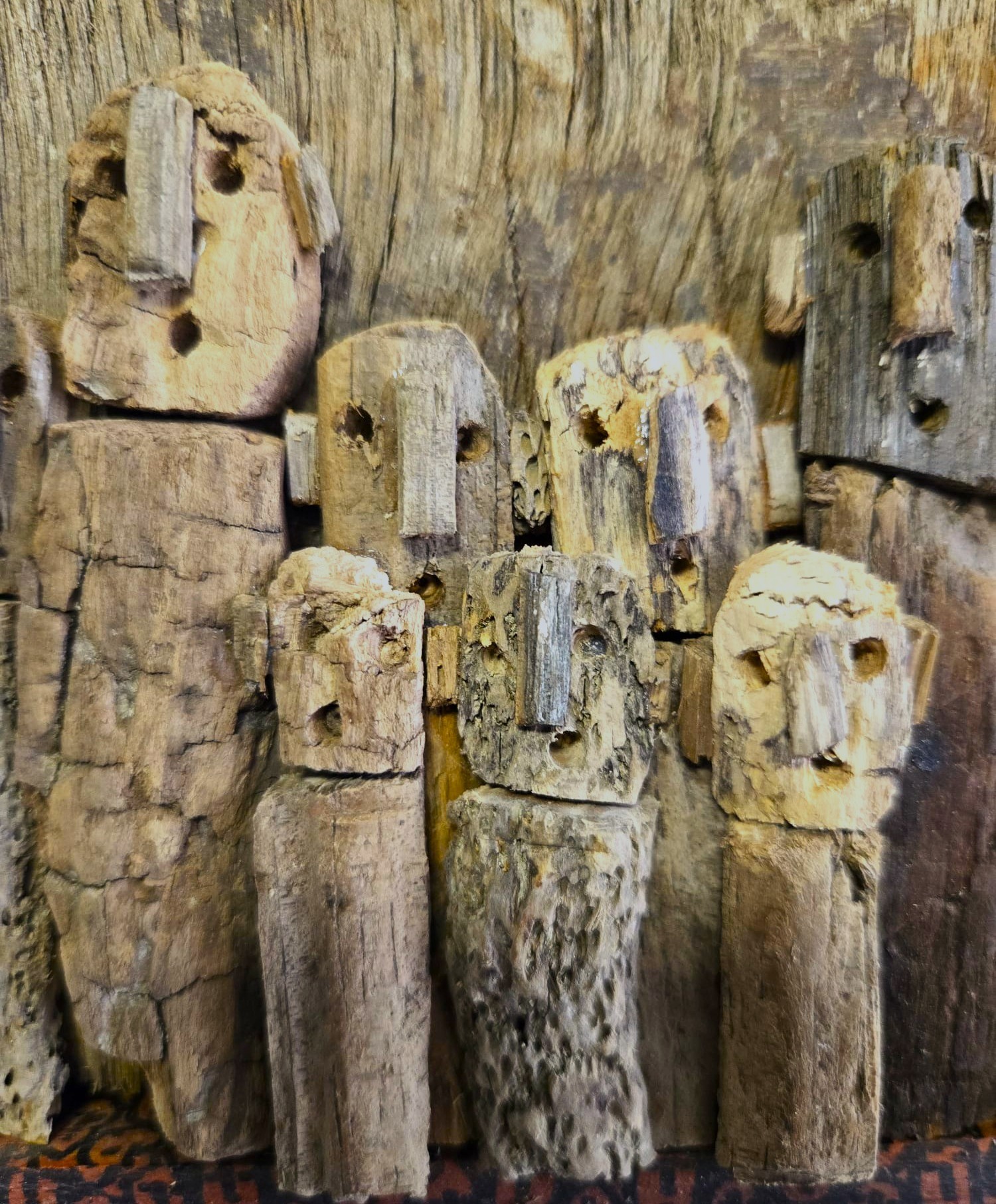 « Quand j’ai réalisé mes premières sculptures en bois flottés, je les ai montrées à une personne de confiance et je me suis entendu dire : “Tu t’es enfin trouvé ! C’est bien toi !” Effectivement, je me suis entièrement accompli dans ces sculptures et j’ai abandonné mon travail sur toile ou carton ondulé que je pratiquais auparavant… La découverte des bois flottés m’a ouvert des horizons jusqu’alors ignorés. Il suffisait de regarder ces morceaux de bois, et tout de suite, les personnages prenaient vie et s’assemblaient. Tout le travail était dans ma tête, il ne me suffisait plus que de le réaliser. »