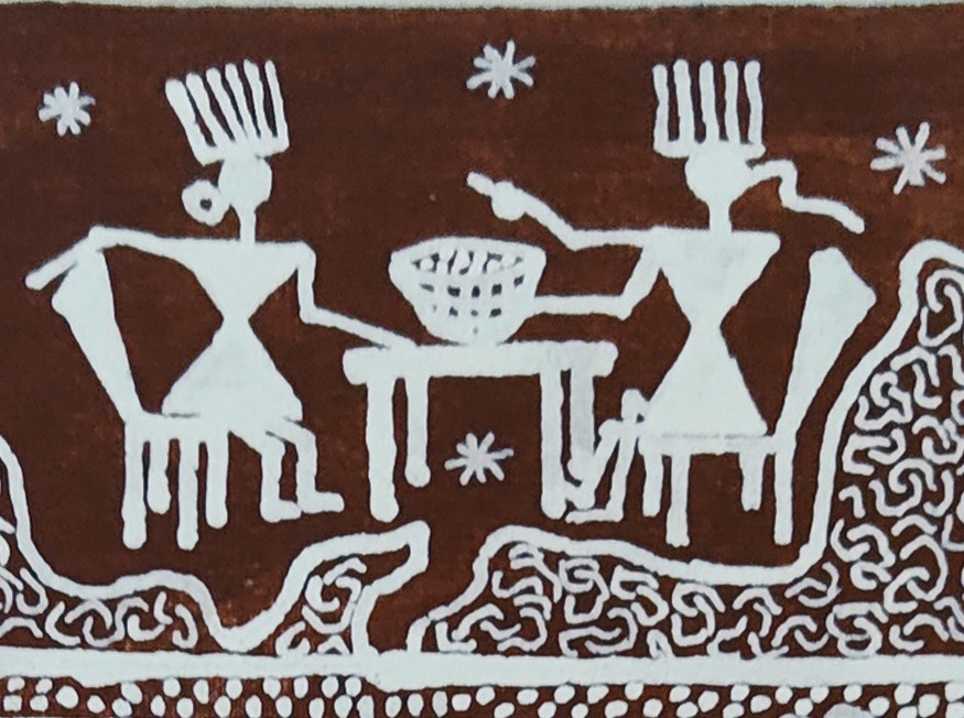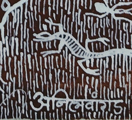 Anil Vangad est l’un des artistes les plusprometteurs de l’art tribal contemporainindien. Il a déjà été accueilli aux USA en2012 pour animer des ateliers dansdifférentes universités et a reçu denombreuses récompenses comme le prixd’excellence de la WORLD CRAFTCOUNCIL OF INDIA en 2013. A l’invitationde DUPPATA, il est venu présenter sesoeuvres en France en 2015 et 2018. Il saitmerveilleusement sortir des sentiers battuset souvent rebattus de l’art rituel. Il n’hésitepas à détourner des thèmes traditionnelspour s’ouvrir à un art plus cinétique. MaisAnil n’oublie pas ses racines. Né en 1983dans le district de Thane, au nord deMumbai, il vit toujours dans le petit hameaufamilial du village de Ganjad, près des siens,frères, soeurs, oncles et cousins, tousagriculteurs. Il a arrêté l’école à 14 ans.Aujourd’hui, il est marié et a trois jeunesenfants. Souvent, son épouse l’assiste dansson