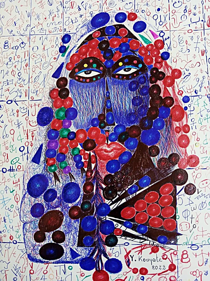 J’aime la peinture et le design, j’éprouve pour ces matières une grande attirance, mais j’ai découvert un autre matériel qui est le stylo. Je travaille exclusivement avec le stylo, plusieurs raisons à cela : l’accès, le prix, et est connu par le grand public. Je trouve qu’il me permet de laisser parler davantage l’imagination, l’intuition, l’improvisation. Une fois la forme achevée, je la traite patiemment. Je fais parfois le traitement avec multiples stylos pour obtenir différentes émotions. Je possède un style, je veux l’exploiter de plusieurs façons.