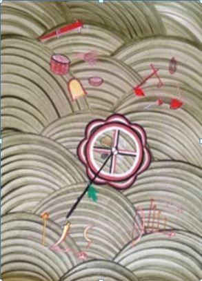 application à des fins décoratives. Mais les illustrations ont assez rares et ces traditions s’estompent; Un mode pictural est néanmoins constitué avec ces répétitions rythmées d’arcs de cercle assortis de motifs géométriques ou de simples figurations.
