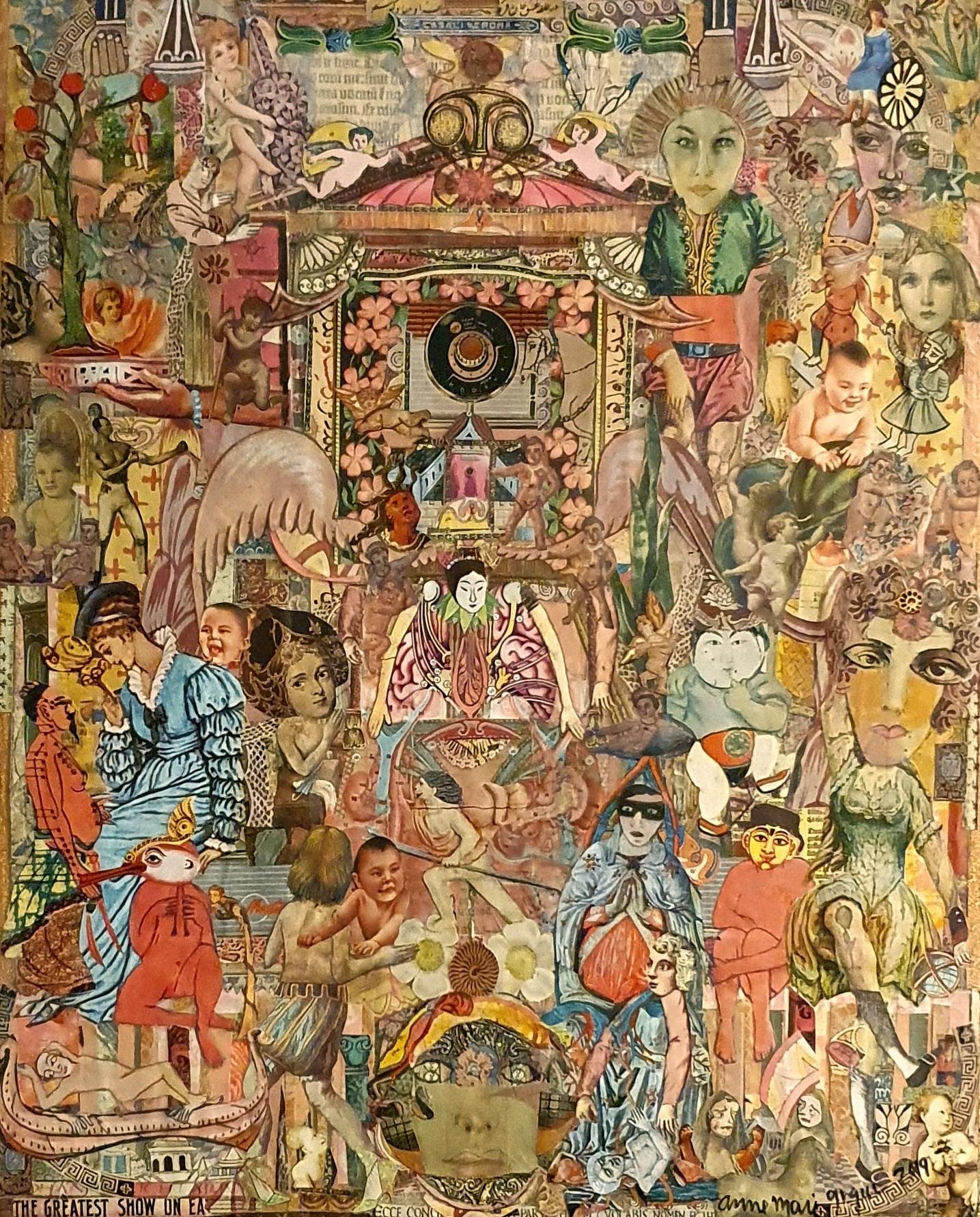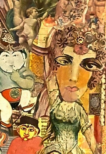 C’ est en 1988 qu’ elle introduit dans son travail, le collage, qui devient son