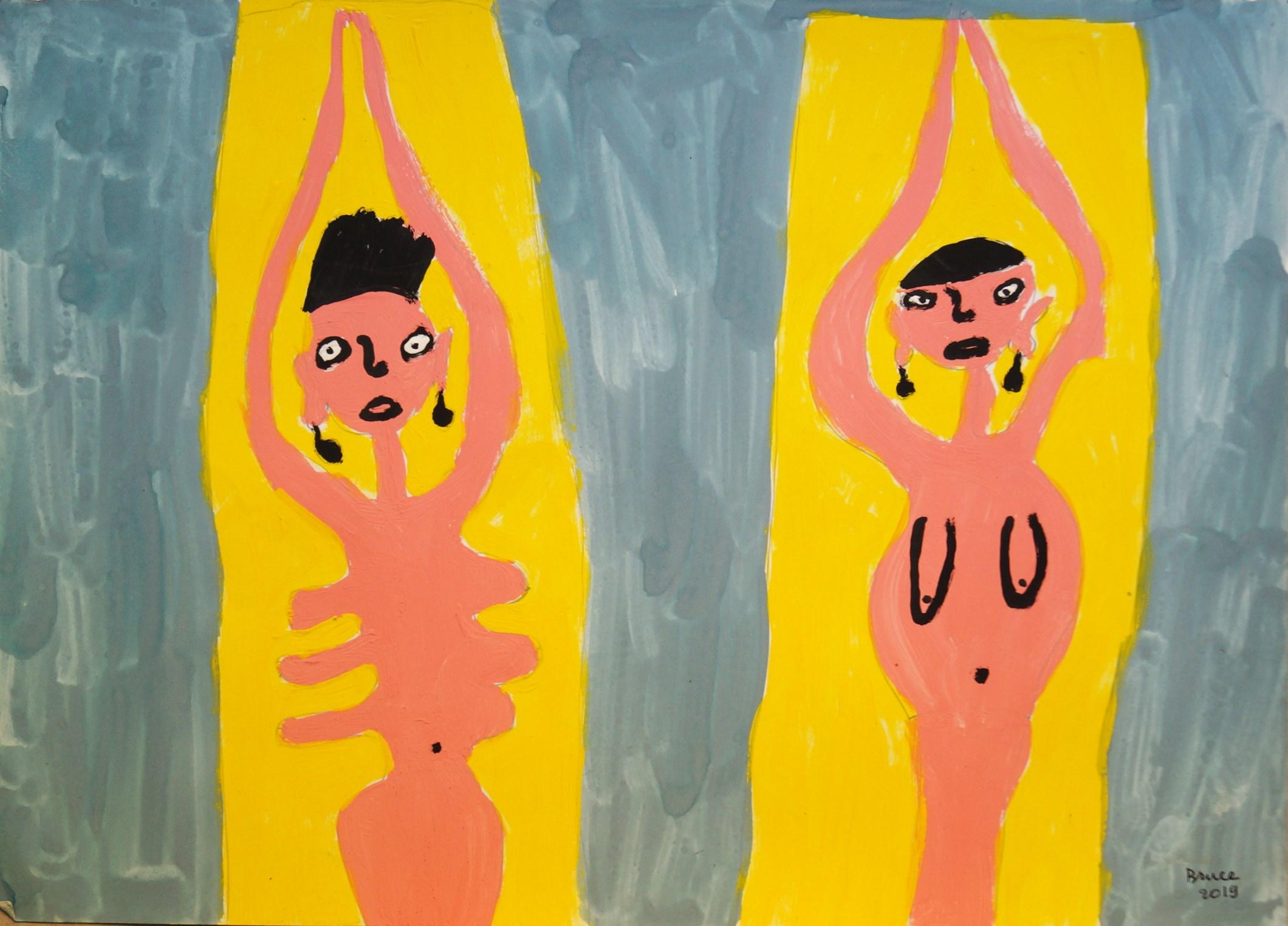 Il  faut beaucoup de temps et puis un jour, la main retrouve un chemin. Les peintures de Bruce sont des leçons de clarté. Couleurs vives appliquées sur des surface planes,  des ciels, des mers, des collines, que rien ne trouble . Ses christs montés en croixn’ inspirent plus de réels soucis, et pourtant la lance les a frappés….