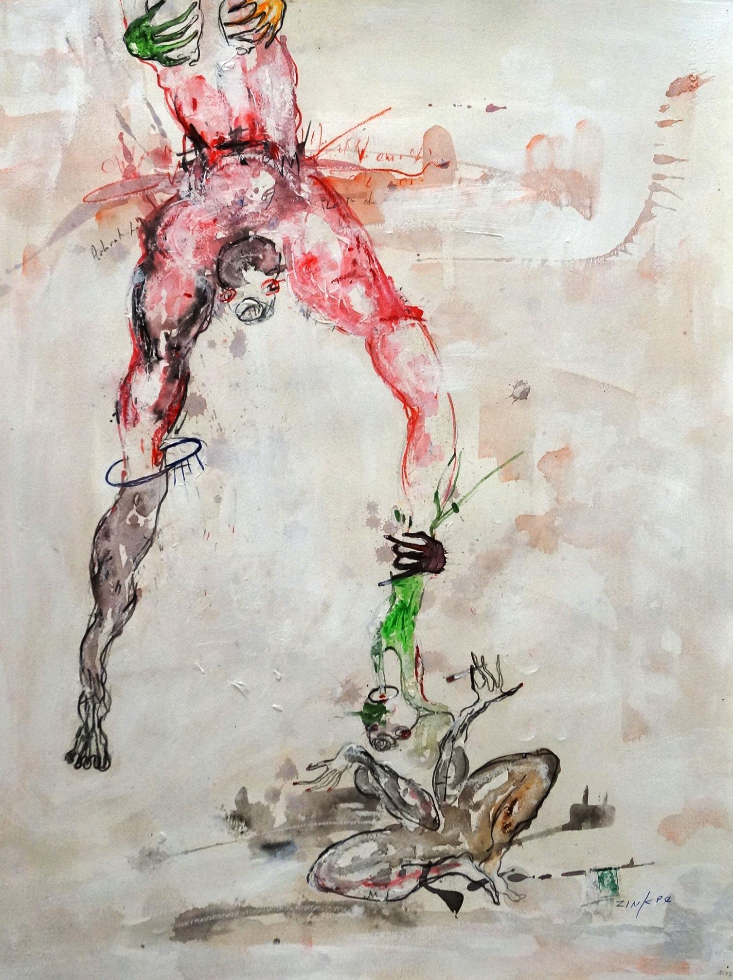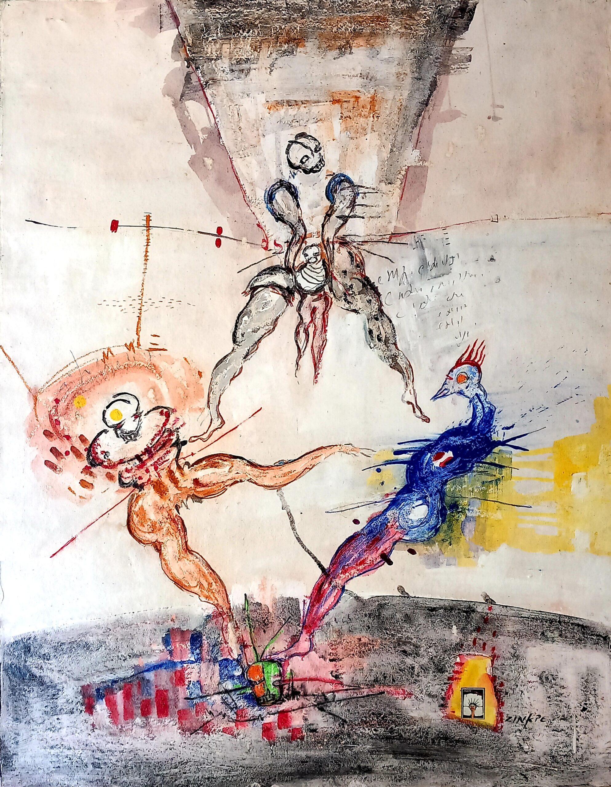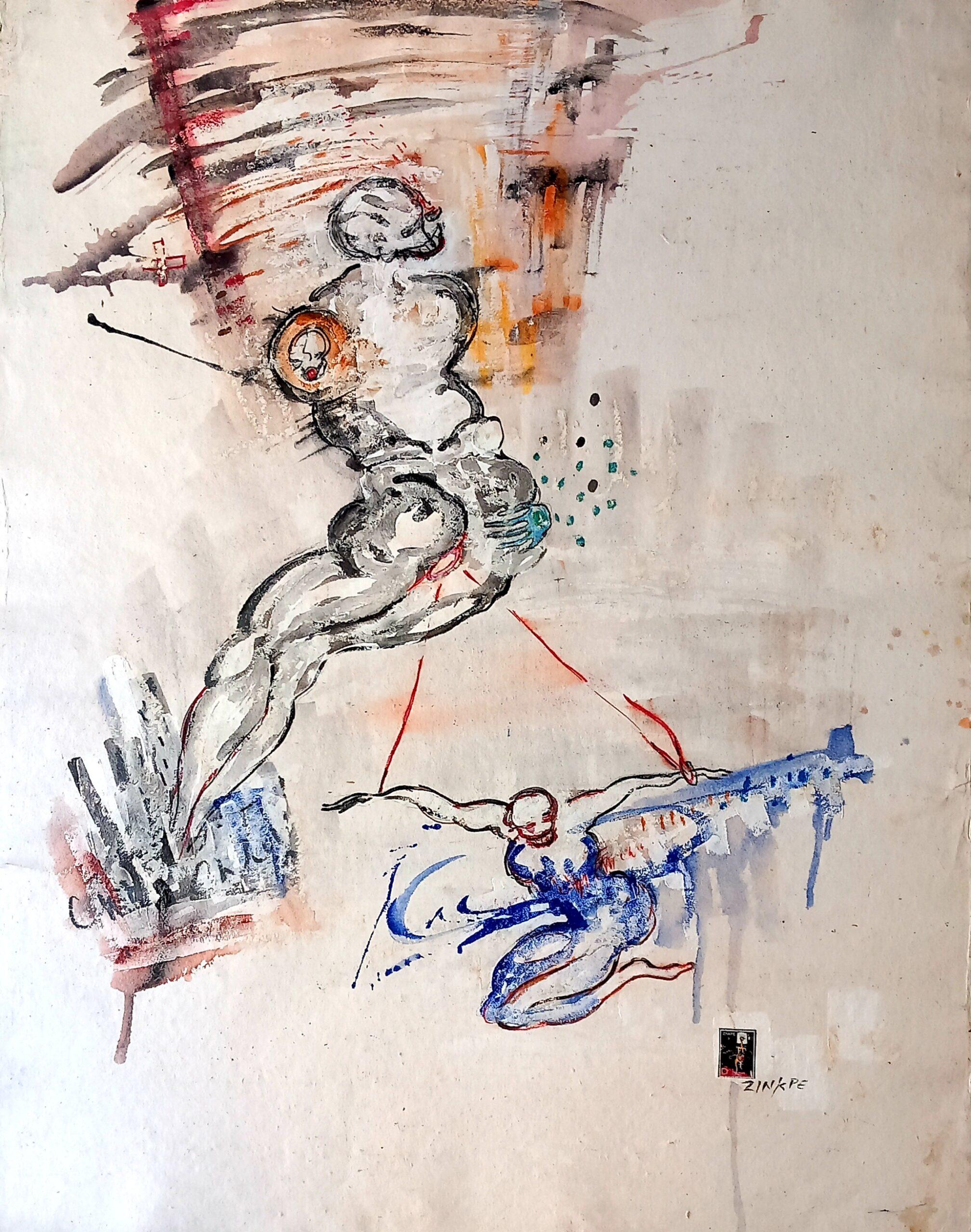 Né en 1969 à Cotonou, Zinkpè est un artiste autodidacte et polyvalent qui réalise dessins, peintures, sculptures et installations.