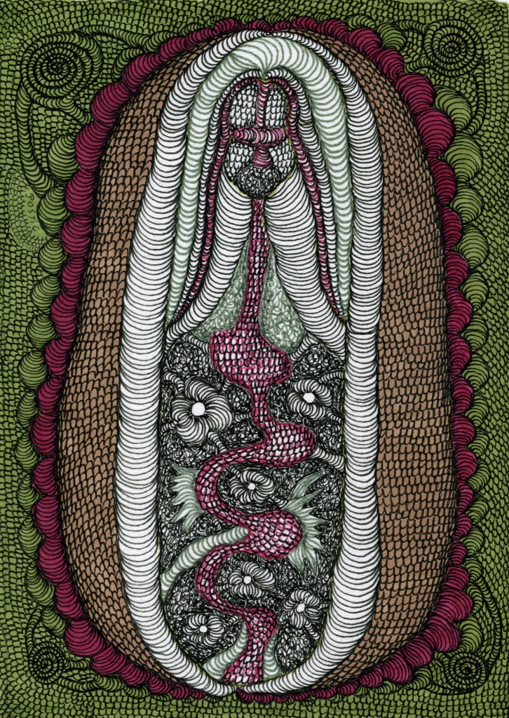 Après son divorce, Evelyne Postic s’installe à Grenoble, avec ses trois enfants, où pour échapper à un quotidien trop pesant, elle s’invente un monde parallèle, et commence à peindre et à dessiner des formes, où se mêlent l’humain, le végétal, l’animal.