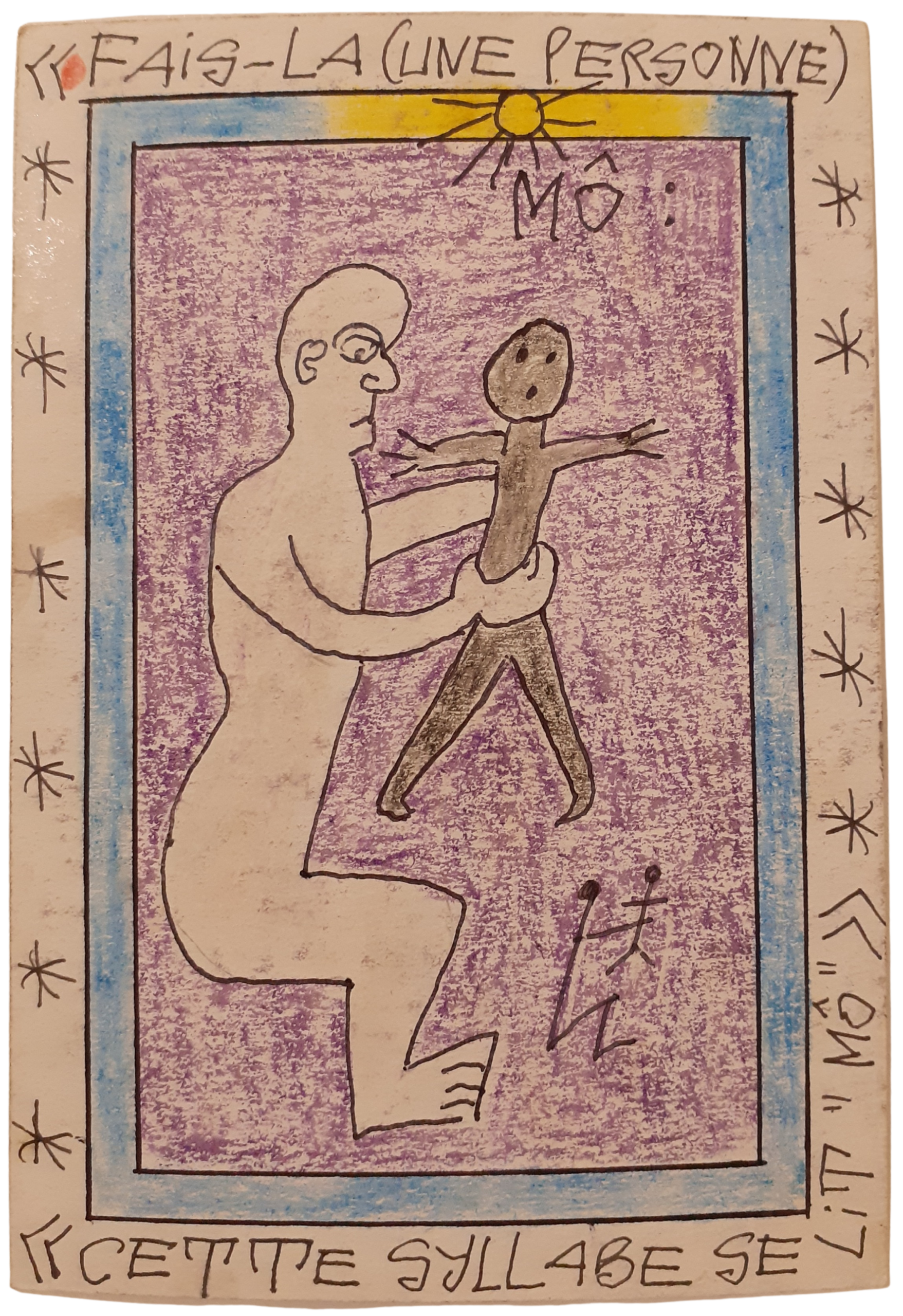 Il a réalisé des centaines de petits dessins représentant différents sujets venus le plus souvent de la culture locale ou inspirés par ses visions. Ses dessins font partie d’un ensemble appelé connaissance du monde dont le but principal est d’apprendre aux enfants sa découverte.