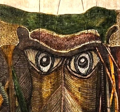 Son inventivité l’entraîne ensuite vers la peinture et le modelage, et vers une pratique du détournement de matériaux. Vieux papiers, briques de liège, disques vinyle, planches anatomiques anciennes, objets chinés en brocante — tout devient support à un imaginaire peuplé de créatures intemporelles. La mine de plomb côtoie des transparences de peinture aux reflets d’organdi ; les couleurs sourdes enveloppent les traits sans en effacer la précision.