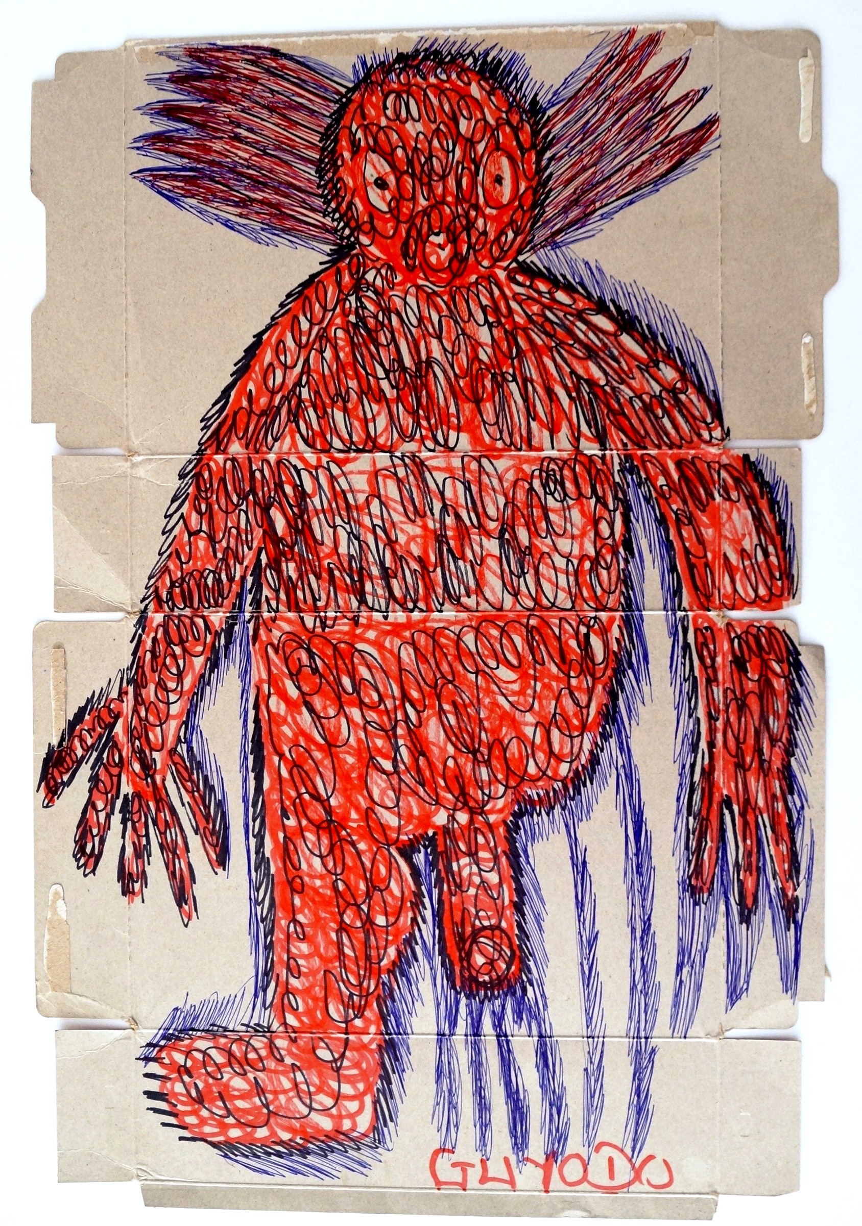 Outre ses sculptures, il réalise également des dessins sur des boîtes de corn flakes et divers types d’emballages.