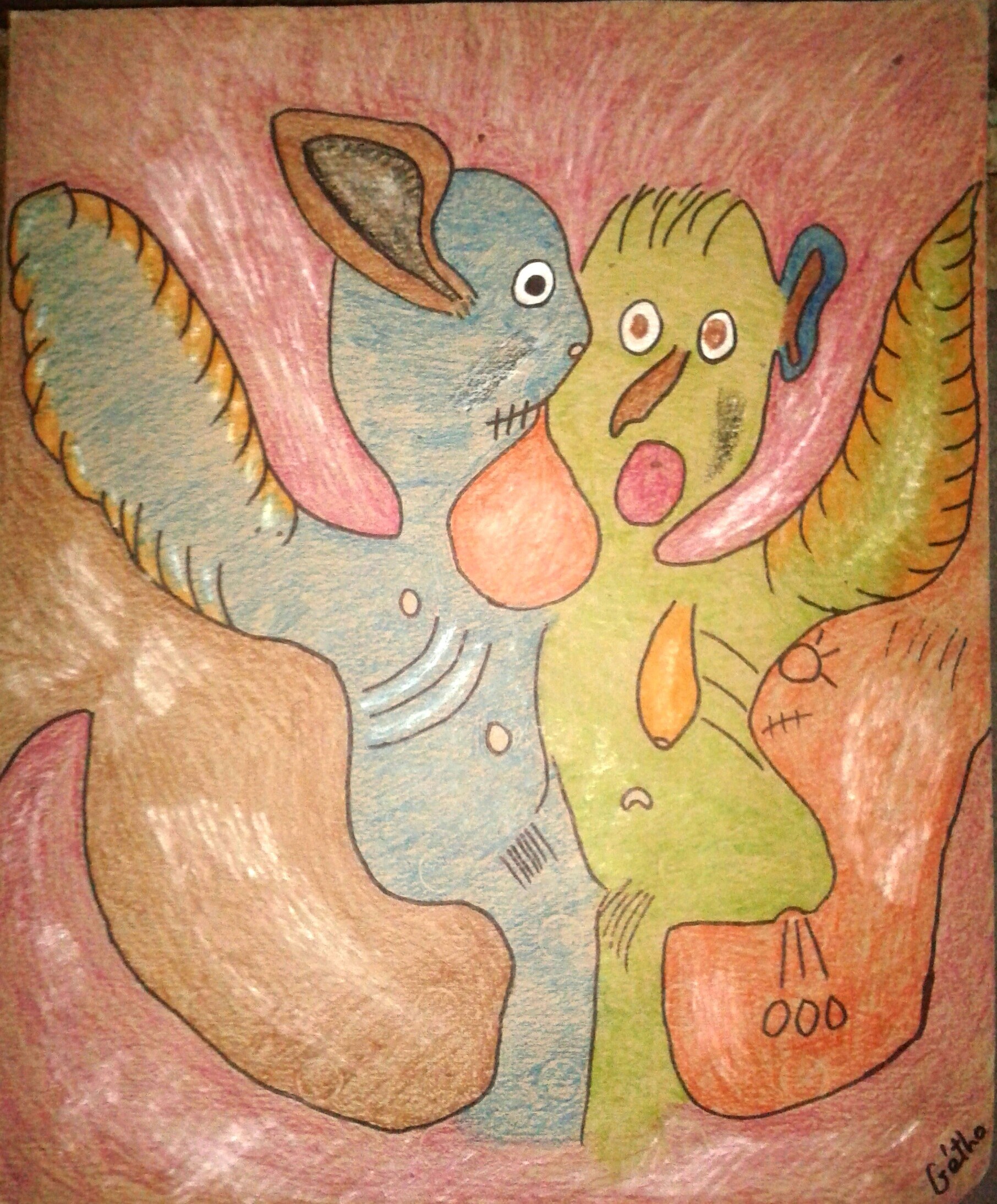« CELEUR JEAN HERARD »  En Mai 2016, »Riccardo Angelo » m’a encouragé à pénétrer dans le monde des peintures. J’ai commencé à crayonner mes propres sculptures sur des cartons recyclés avec des crayons couleurs, aujourd’hui, je travaille avec de la peinture acrylique ou oil. Avec l’aide de Riccardo Angelo, je vois la vie beaucoup plus simple qu’avant, il suffit de travailler avec  inspirations et sans relâche. Pour moi, il ya beaucoup plus d’avenir dans ce monde que la sculpture.