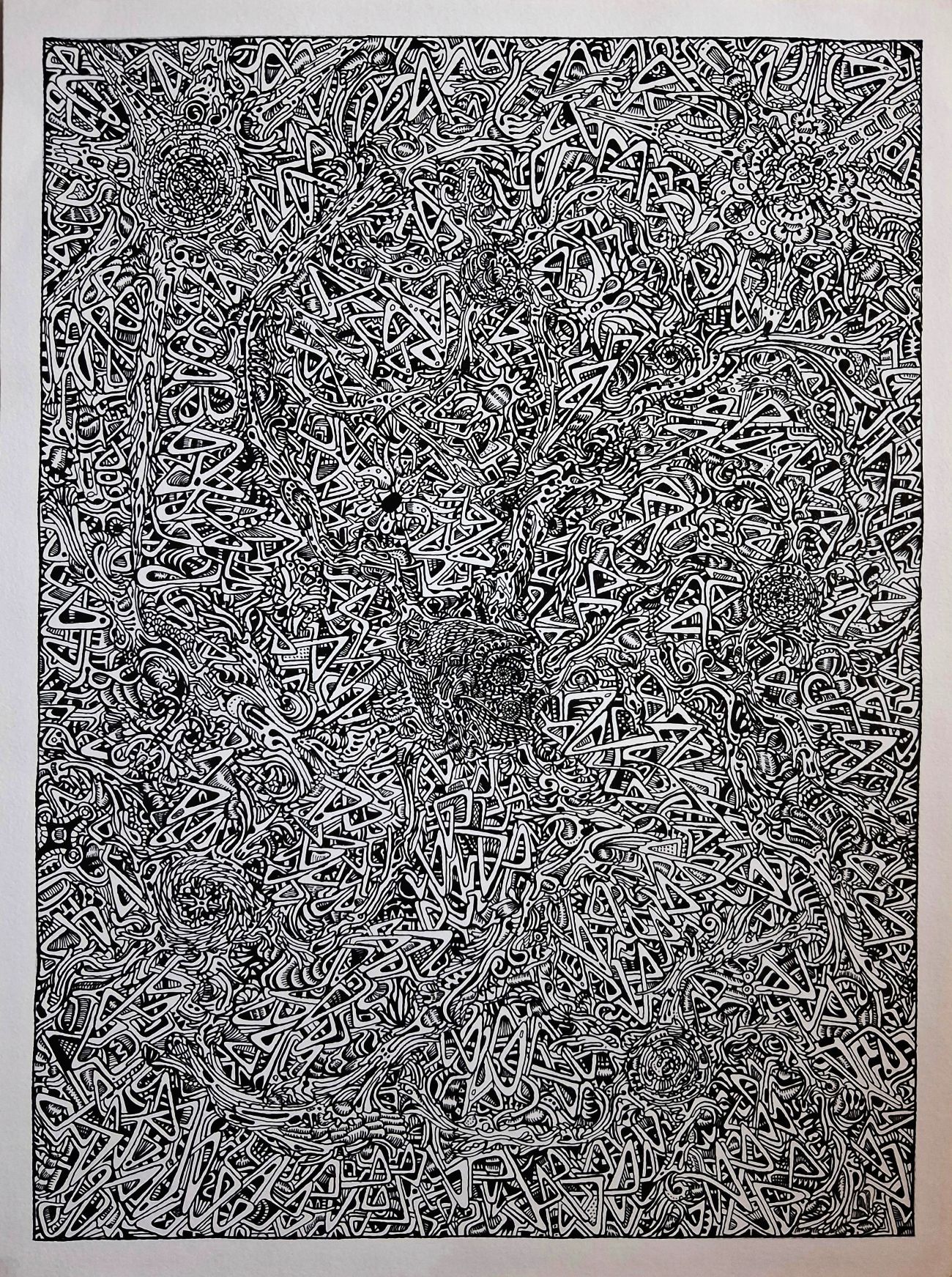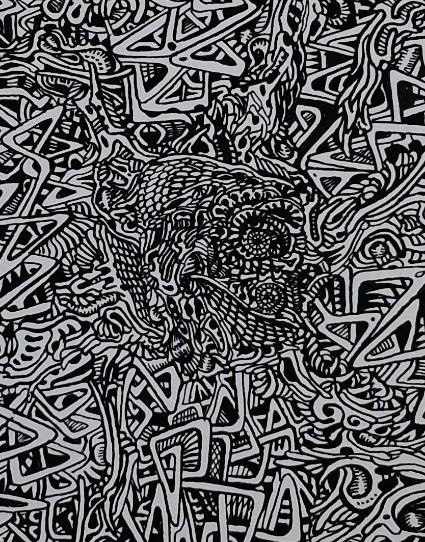 * 1988 : premier grand dessin ( 3 mètres par 2.40 mètres ) à l’encre de chine sur toile de lin moyen avec plume-Sergent Major .Depuis cette date , travaille exclusivement en noir et blanc avec cette même technique , sur papier , et sur toile de lin moyen pour les plus grands formats ( 11 mètres de large pour la plus grande toile à l’heure actuelle ) .