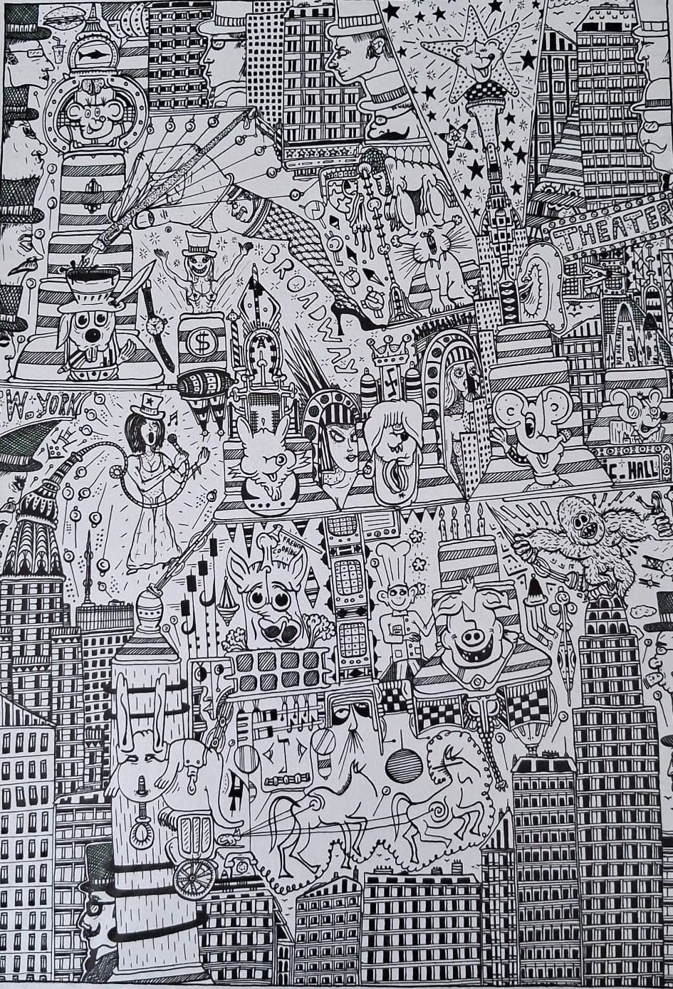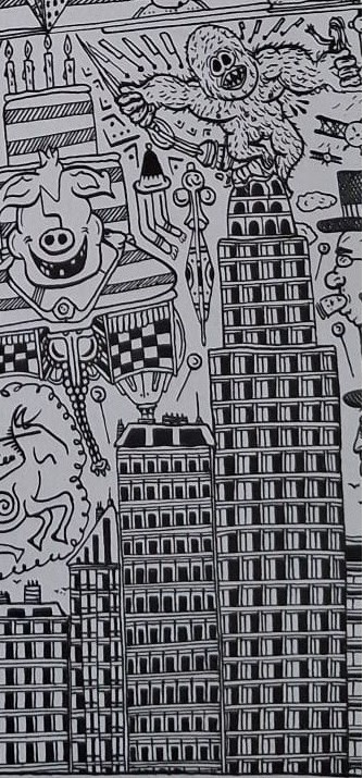 Ses œuvres toutes en accumulation de personnages, d’historiettes fantastiques et de rappels historiques sont étonnamment bien construites. Trait d’une justesse exceptionnelle, graphisme déroutant par sa rigueur farfelue, incroyable par sa technique euphorisante.