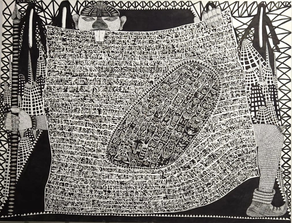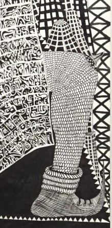 * 1988 : premier grand dessin ( 3 mètres par 2.40 mètres ) à l’encre de chine sur toile de lin moyen avec plume-Sergent Major .Depuis cette date , travaille exclusivement en noir et blanc avec cette même technique , sur papier , et sur toile de lin moyen pour les plus grands formats ( 11 mètres de large pour la plus grande toile à l’heure actuelle ) .