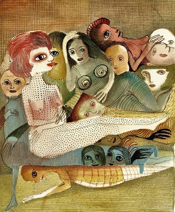 Inspiré par sa seule intuition, elle se laisse guider et ses créatures à la fois humaines et animales sont des parties d’elle-même.