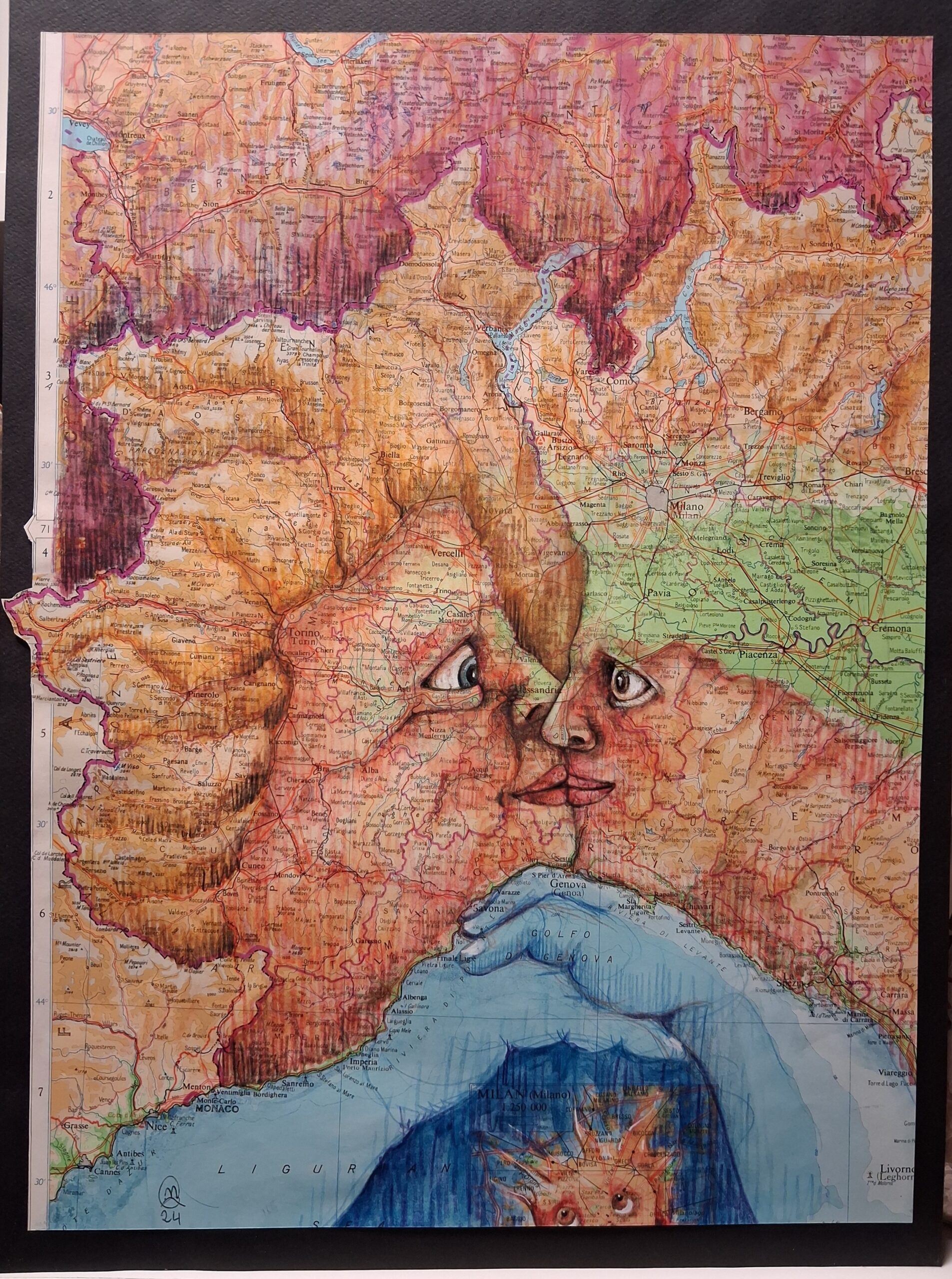 Aujourd’hui, à travers ses dessins sur cartes de géographie, Marcoleptique affirme une identité singulière dans le paysage artistique actuel, portée par une écriture plastique reconnaissable et une forte intensité expressive.
