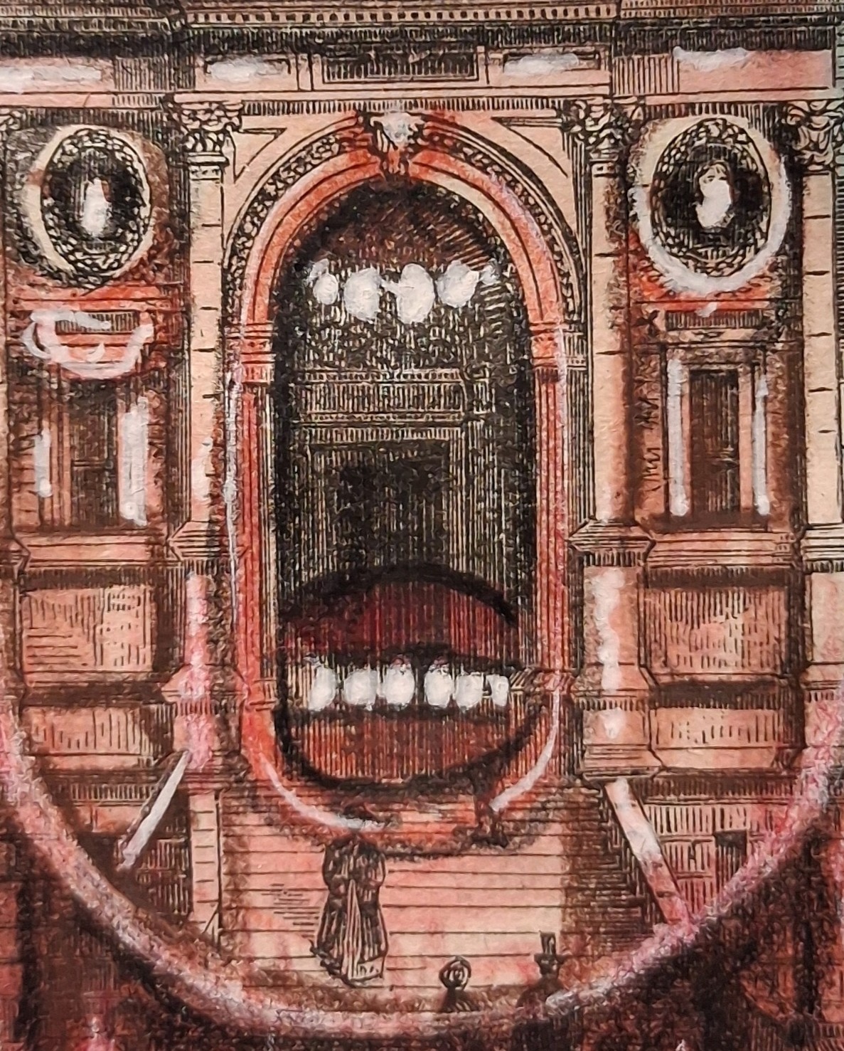 Ainsi Marcoleptique, après s’être exercé sur différents types de vieux documents et autres planches anatomiques utilise désormais pour l’essentiel des cartes de géographie ou des plans de villes qu’il détourne . C’est à l’ évidence avec ces documents que s’ exprime avec la plus grande réussite son imagination et son incroyable créativité.