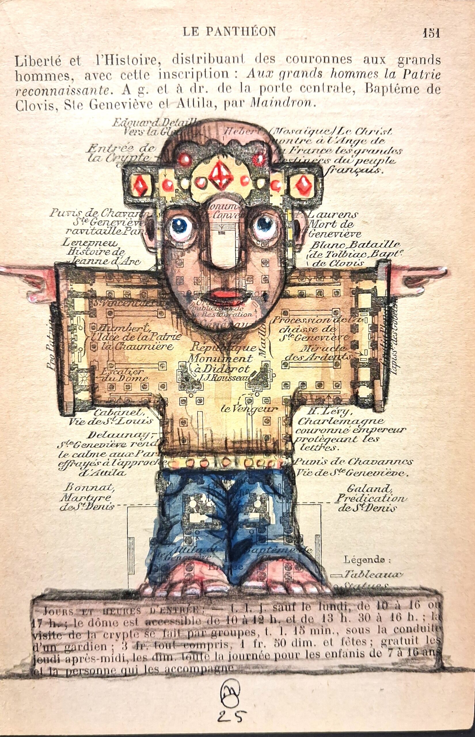 Aujourd’hui, à travers ses dessins sur cartes de géographie, Marcoleptique affirme une identité singulière dans le paysage artistique actuel, portée par une écriture plastique reconnaissable et une forte intensité expressive.