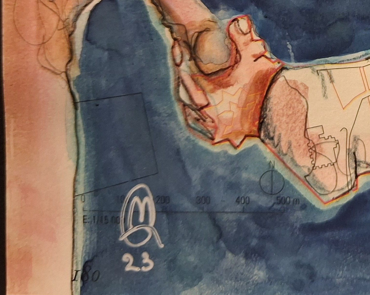 Les dessins sur cartes de géographie de Marcoleptique  deviennent des territoires d’exploration. Il travaille la superposition, l’effacement, la trace. Chaque œuvre porte les marques d’un processus vivant, fait d’accidents maîtrisés et de gestes spontanés.