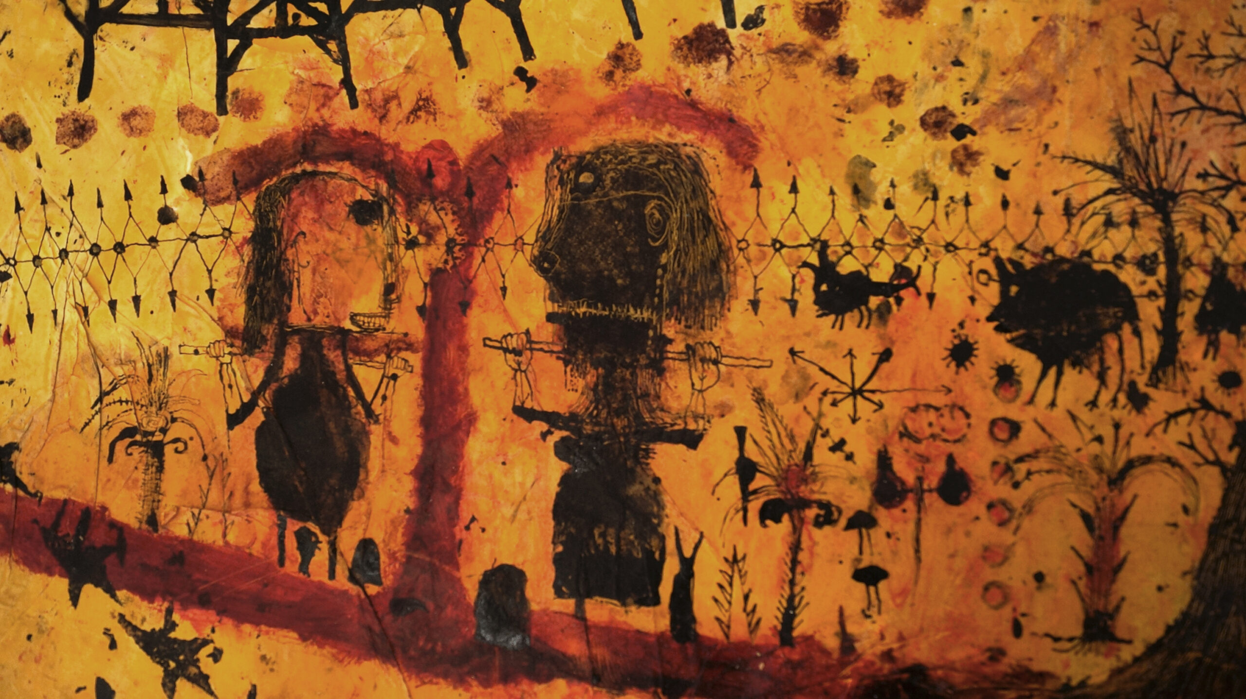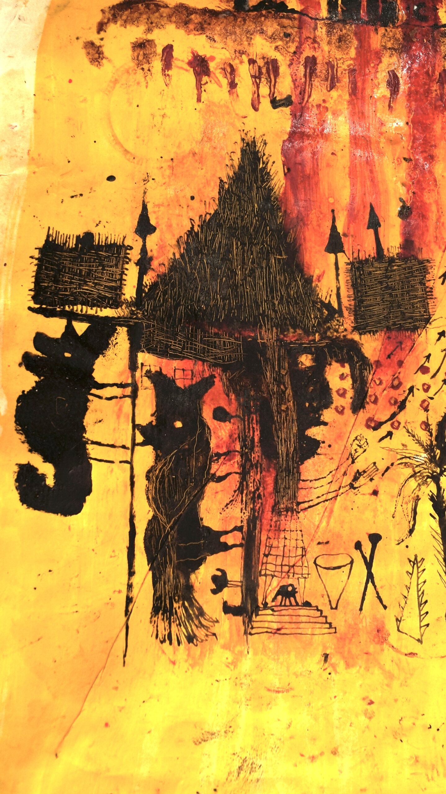 Les formes semblent gravées sur le fond, traces intemporelles de son inconscient.