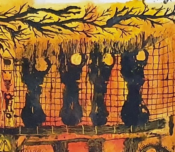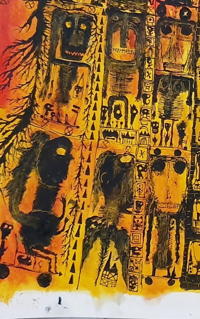 Les formes semblent gravées sur le fond, traces intemporelles de son inconscient.