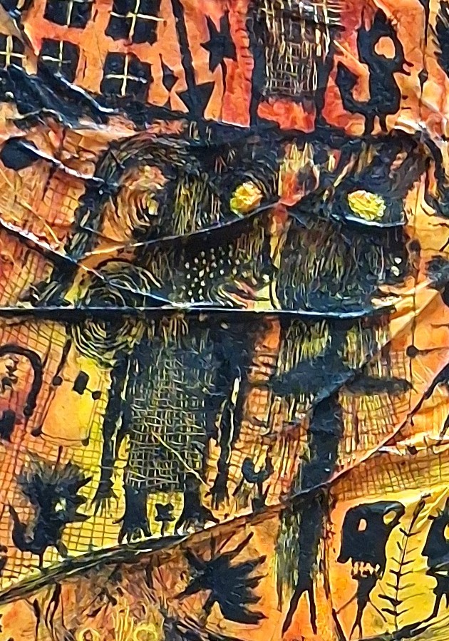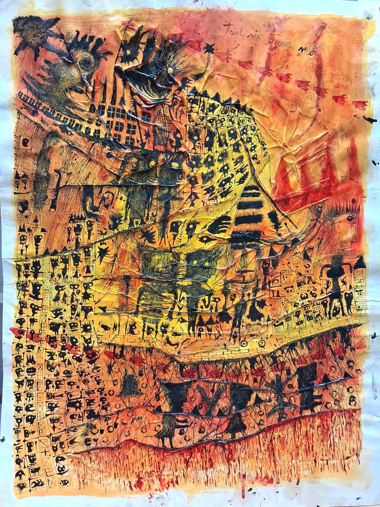 Les formes semblent gravées sur le fond, traces intemporelles de son inconscient.