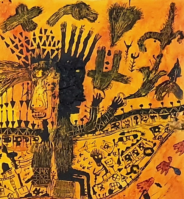 Les formes semblent gravées sur le fond, traces intemporelles de son inconscient.