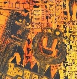 L’univers de Philippe Azema[1], c’est la spontanéité des formes, la contorsion des couleurs, l’imprévisibilité de la composition, c’est dés le premier regard, l’audace de l’originalité. Une originalité, à la fois originale et originaire, car son œuvre totalement novatrice, unique, trouve ses racines aux origines de l’ art, dans un temps où les hommes pratiquaient la religion de l’art, entendue comme une restitution symbolique de la réalité.