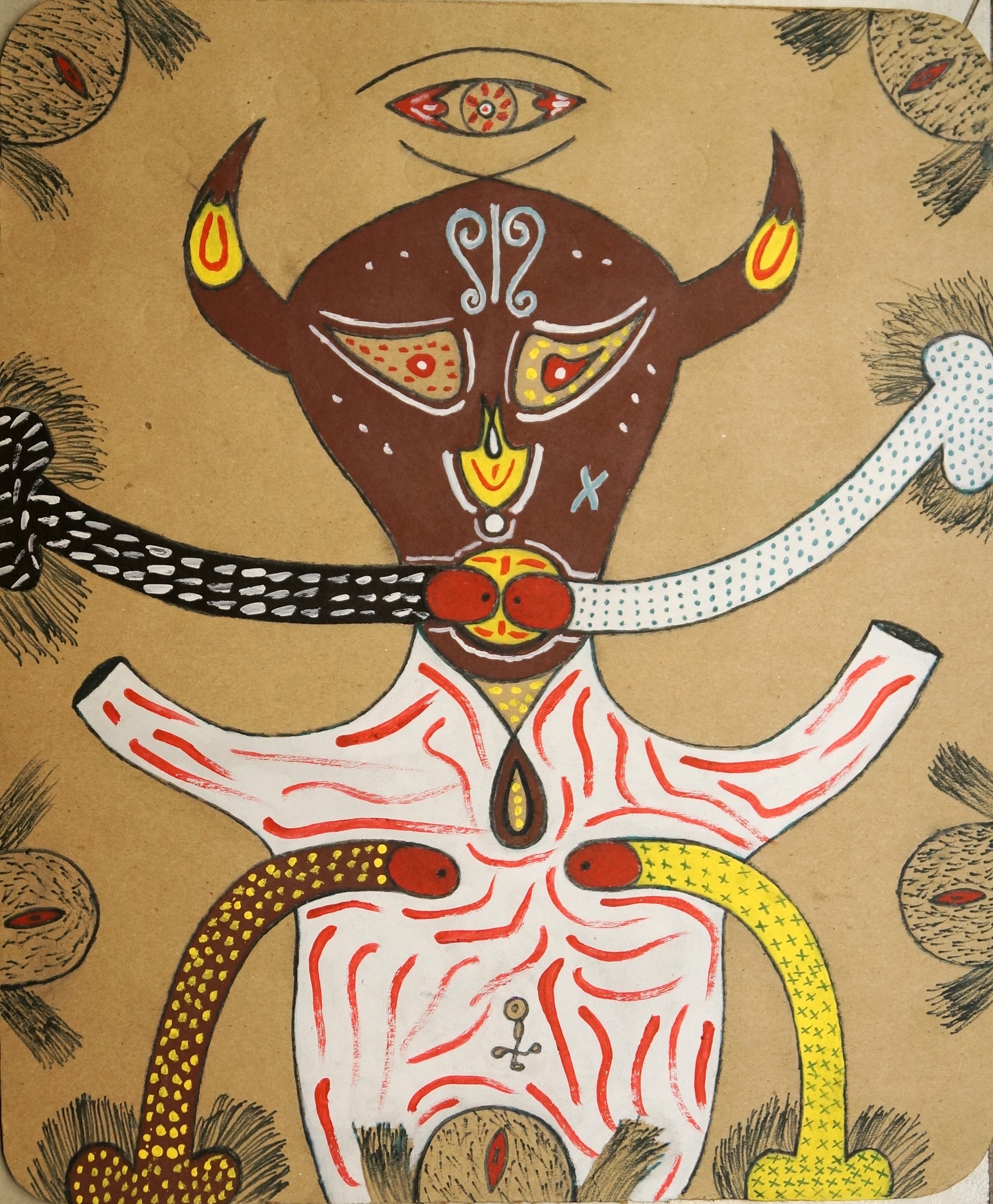 » Je suis  un artiste peintre haïtien et je viens de Port-au-Prince. J’utilise les cartons comme surface pour peindre et peinture acrylique.mon inspiration vient du vodou haïtienne et de la nature.je fais partie du groupe New Vision et je suis le fondateur de ce groupe ensuite j’ai ouvert un école artistique dans ma communauté nommé « new Vision school of art « pour enseigner les enfants et les filles  à dessiner et à peindre car je crois la peinture peut guérir notre pays spécialement le ghetto. »