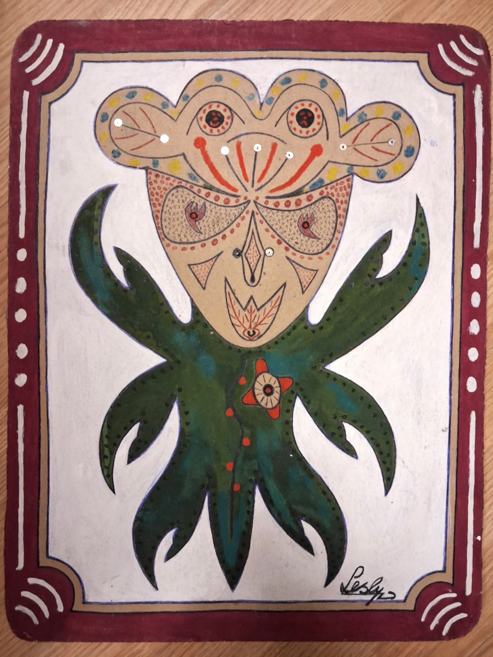 » Je suis  un artiste peintre haïtien et je viens de Port-au-Prince. J’utilise les cartons comme surface pour peindre et peinture acrylique.mon inspiration vient du vodou haïtienne et de la nature.je fais partie du groupe New Vision et je suis le fondateur de ce groupe ensuite j’ai ouvert un école artistique dans ma communauté nommé « new Vision school of art « pour enseigner les enfants et les filles  à dessiner et à peindre car je crois la peinture peut guérir notre pays spécialement le ghetto. »