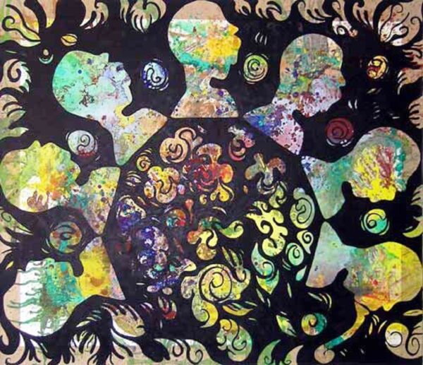 Né en 1955 à Sfax en Tunisie, Hatem Akrout est un autodidacte qui vit et travaille à Marseille depuis plus de 30 ans. Paradoxalement ses réalisations sont peut-être plus connues dans cette ville au travers du nom collectif d’ArtStudio, dont il est membre fondateur, que sous son véritable patronyme. Pourtant il est l’auteur d’un univers extrêmement original et personnel, comparable à nul autre tant au niveau du propos que des techniques utilisées pour le faire surgir. Il a exposé de nombreuses fois dans des lieux de référence de l’Art Contemporain, en France et en Europe, a réalisé plusieurs commandes pour les villes d’Aubagne, de Martigues ou de Marseille. Il a participé à la réalisation de livres et enseigne à l’école des arts plastiques de la ville de Gardanne. La définition de l’Histoire par Schopenhauer pourrait parfaitement s’appliquer à celle de l’Art en général ou même à celle du travail d’Hatem Akrout en particulier : « L’histoire a beau prétendre nous raconter toujours du nouveau, elle est comme le kaléidoscope : chaque tour nous présente une configuration nouvelle, et cependant ce sont, à dire vrai, les mêmes éléments qui passent toujours sous nos yeux ». Persuadé de cette évidence Hatem Akrout sait revenir à son essentiel pour se renouveler. Des figures simples issues d’une imagerie personnelle, assemblées, imbriquées, inlassablement recomposées dans une sorte d’art du motif. Il mêle quelques rappels à des travaux et des techniques antérieurs aussi bien qu’il use d’une échelle différenciée pour les éléments prépondérants. La cohue qui en résulte est toutefois beaucoup plus ordonnée qu’elle ne le paraît car chaque figure est habitée d’une valeur emblématique ou allégorique et l’agencement précisément proposé des unes avec les autres permet de formuler un récit. Cependant rien n’est dit, tout est suggéré et l’artiste laisse à tout un chacun le soin d’imaginer sa propre histoire en attribuant à chaque figure son propre sens.